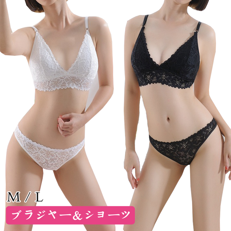 ブラ&ショーツ セット ブラジャー ノンワイヤー ブラ ショーツ 可愛い 下着 レディース レース 黒 ブラック ホワイト 白 ベージュ ショーツセット ブラジャーショーツ
