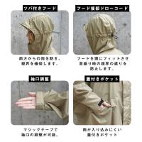 ・ツバ付きフードで前方からの雨を防ぎ、視界を確保します。