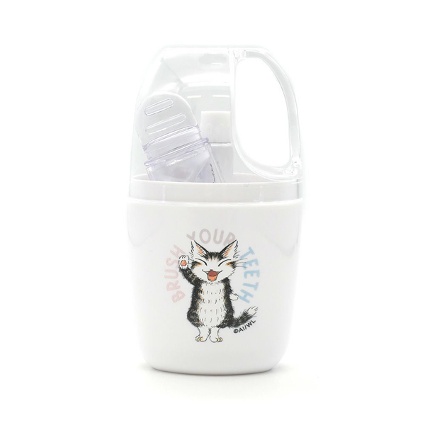 持ち運びに便利な歯ブラシとコップのセットです。フタはコップに変身。コンパクトなので旅行や職場でも活躍します。やさしいミントフレーバーの歯磨き粉付き。