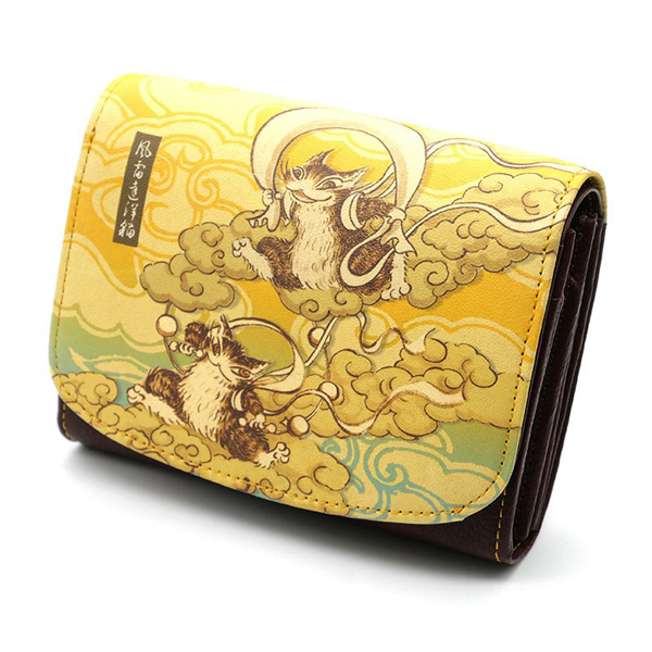 定番の被せ型二つ折り財布が、わちふぃーるどならではの和柄デザイン『風神雷神ダヤン』で登場です。内生地には、縁起の良い黄金色の生地を使用。小銭入れはマチ付きで見やすいのがポイントです。