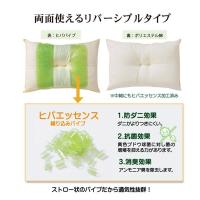 選べる高さが3種類。ご希望のサイズを選んで下さい。ヒバエッセンス練り込みパイプを使用しています。青森県のヒバの木から抽出した「ヒバエッセンス」をメーカー独自の技術でパイプに加工しました。ヒバエッセンスには、ヒノキチオールという、天然物質としては極めて抗菌性の高い成分が含まれています。(無加工品に比べ、抗菌・防臭効果があります。)ヒバエッセンスで安らかな森の眠りをご提案します。パイプ使用のため、通気性がよく、熱がこもらず心地よくご使用できます。リバーシブルタイプでひばパイプ側、ポリエステルわた側の2種類の触感を楽しめます。※中材の出し入れはできません。