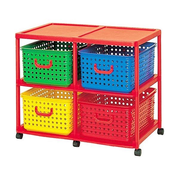 カラフルに色分けして収納。キャスター付きで移動ラクラク。※組立式