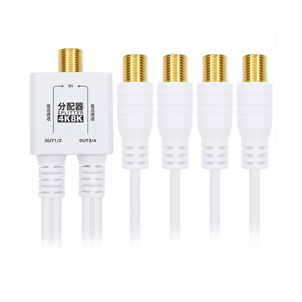 【商品名】 ホーリック アンテナ4分配器 極細ケーブル一体型 10cm ホワイト F型接栓メス AP-717WW [ AP-717WW ]