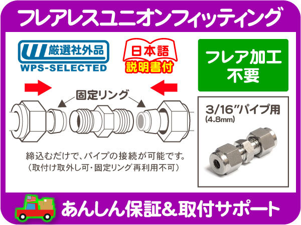 フレア 加工 不要 フレアレス ユニオン フィッティング 3/16 パイプ 修理 補修 4.8mm パイプ ブレーキ フレア ナット ジョイント★DSN