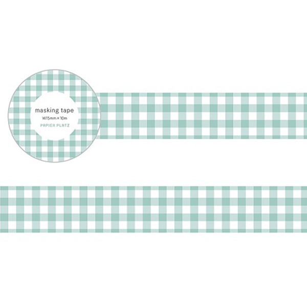 マスキングテープ PAPIER PLATZ パピアプラッツ クレス オリジナルマスキングテープ Check Aquamarine(チェックアクアマリン)15mm×10m 72-019