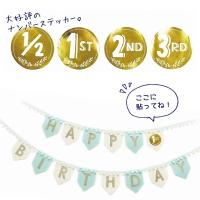 無地のフラッグに付属のシールを貼ることができます。1歳から3歳まではもちろん、生後6ヶ月の記念日のハーフバースデーもお祝いできる1/2のナンバーステッカーもついています!
