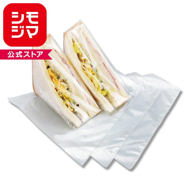 三角型サンドイッチ専用の無地ポリ袋です。サンドイッチの厚みを見越して台形のシルエットになっています。厚0.025×幅45×全体幅175×高200mmIPP