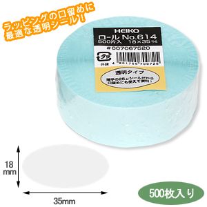 タックラベル(シール)HEIKO シモジマ 透明の楕円シール(18×35mm) ロールシール No.614 (500枚入り)