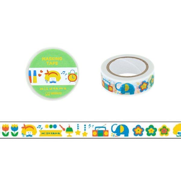 マスキングテープ サンスター文具 mizutama(ミズタマ)コラボ 第4弾 グリーン 15mm×7m S8817790