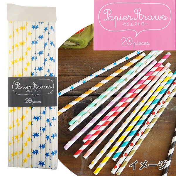 パピエストロー(紙ストロー) イエロースター・ブルースター (10本×2柄入り)