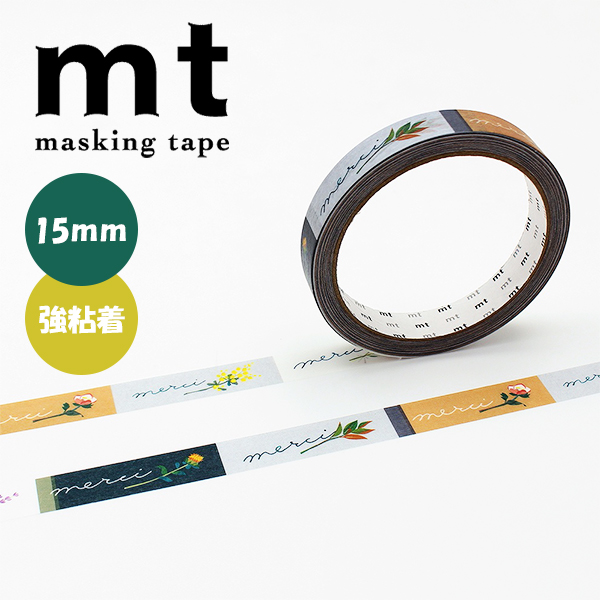 マスキングテープ mt カモ井加工紙 mt large core flower 強粘着 サンキューテープ 15mm×25m MT01L092 フラワー 花