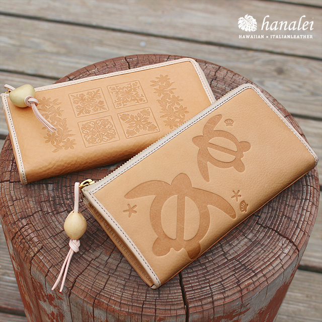 【ハワイ柄で大人気】イタリアンレザー 長財布 レディース ベジタブルタンニンなめし 植物タンニン 本革 ハワイアン 幸運 ホヌ プルメリア モンステラ 使いやすい 軽量 プレゼント ギフト レザージー
