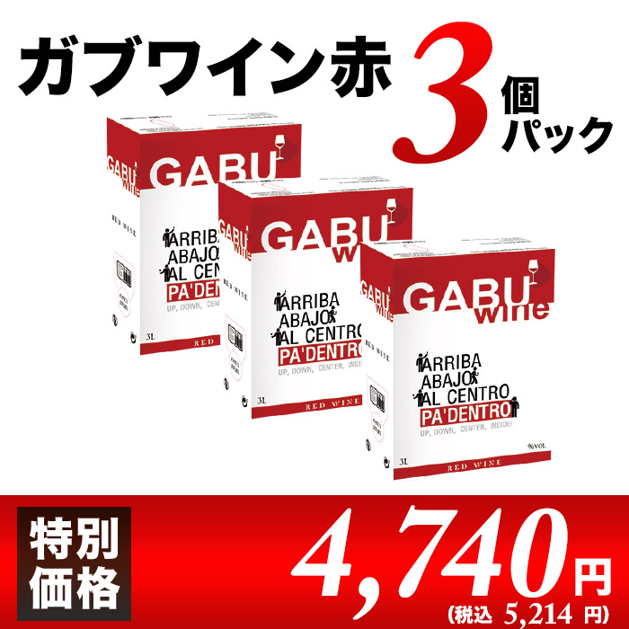 ボックスワイン ワイン 赤ワイン GABUWINE(ガブワイン)3個パック 3Lx3個 箱ワイン
