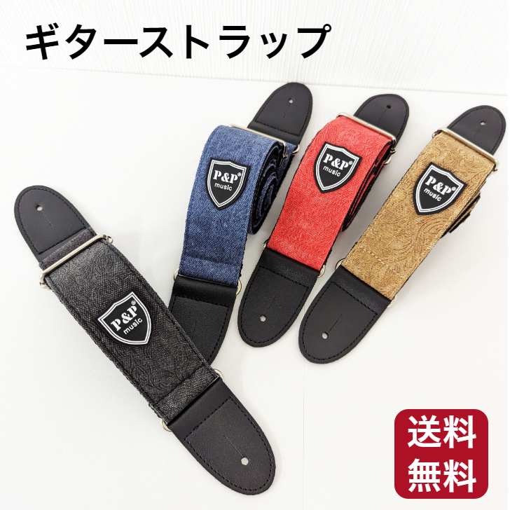 ギター ストラップ P&P デニムコットン エレキギター/アコースティックギター/ベース用ストラップ