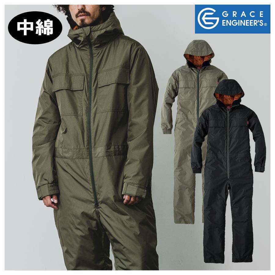 コスパに優れた冬用中綿入りツナギ。ヒンヤリ感をなくすよう頬周りの裏地をトリコット素材にしたり、袖口は調整が出来るタブ付きであったりと機能面も十分です。