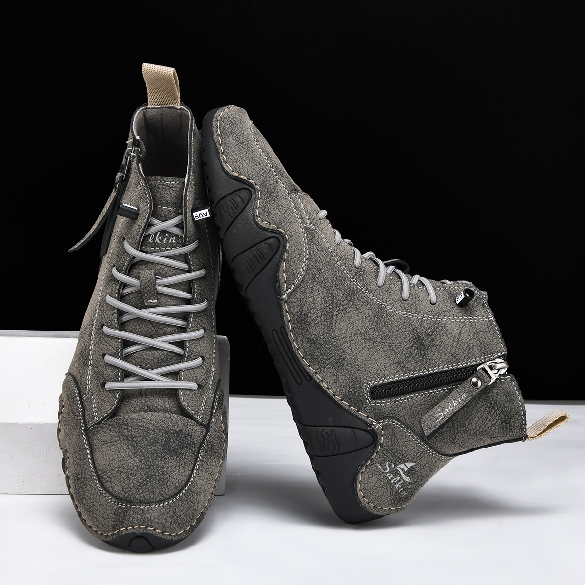 新作 秋冬 メンズ ハイカット レザー スニーカー ドライビングシューズ サイドジップ カジュアル おしゃれ 軽量快適 通勤靴 10色