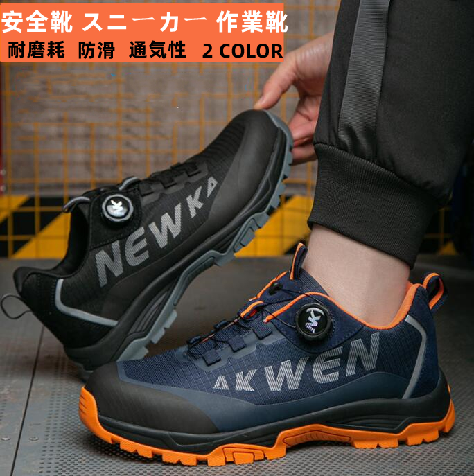安全靴 あんぜん靴 作業靴 ダイヤル式 鋼先芯 通気 耐滑 耐摩耗 おしゃれ スニーカー 衝撃吸収 厚底 メンズ レディース ワーク シューズ 2色
