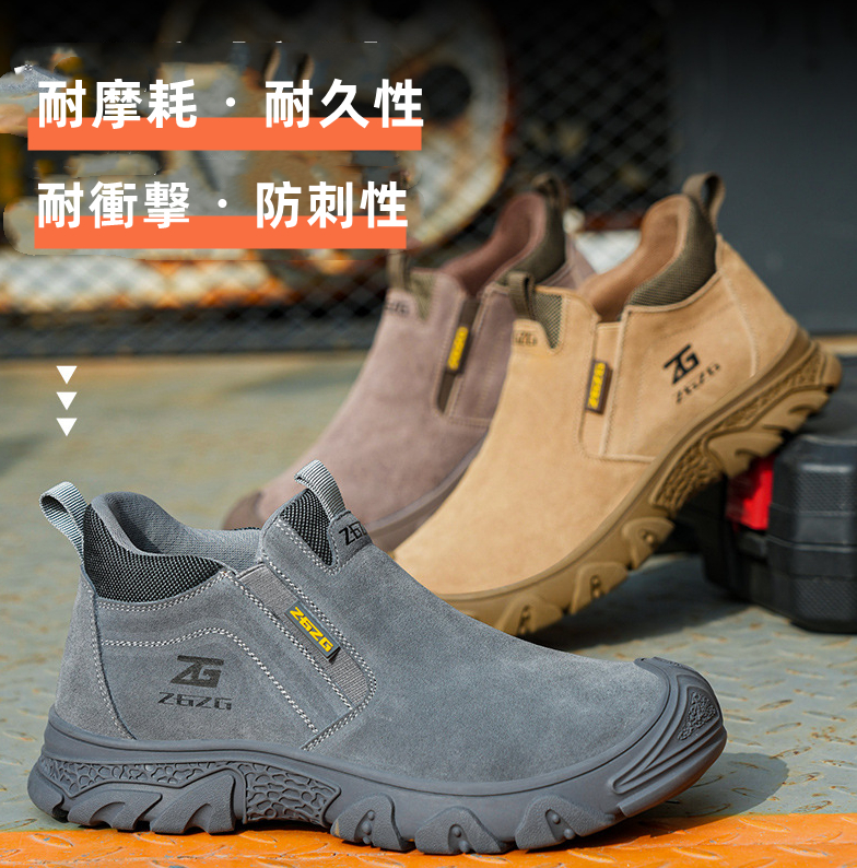 スリップオン式 牛革製 メンズ用 安全靴 衝撃・踏み抜き防止 / ローカット / 耐磨耗性 / 溶接スパーク・高温飛沫対策 / 作業用防護靴メイン素材: スエード/牛革ソール:ゴムカラー: グレー ブラウン イエローサイズ:23.0cm~28.5cm●スリップオン式:紐なしで着脱可能なデザイン。●牛革製:耐久性に優れた牛革素材。●メンズ用:男性向けサイズ・デザイン。●衝撃・踏み抜き防止:重衝撃や鋭利な物の踏み抜きから足を保護。●ローカット:足首まで覆わない低めのデザイン。●耐磨耗性:長時間の使用に耐える耐摩耗ソール。●溶接スパーク・高温飛沫対策:溶接作業時の火花や高温液体の飛散を防止。●作業用防護靴:危険を伴う現場作業向けの機能性安全靴。△工業用途や溶接現場での実用性を重視した仕様です。