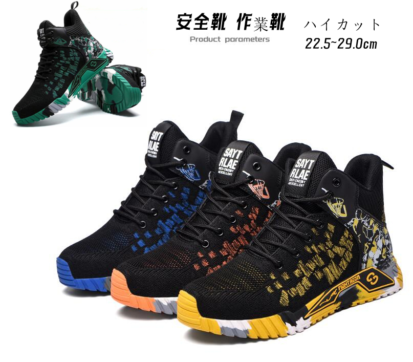 安全靴 あんぜん靴 作業靴 メンズ レディース 鋼先芯 耐滑 釘踏み抜き防止 通気性 つま先保護 工事現場 ワークシューズ セーフティーシューズ 耐摩耗靴幅: 3E表地: ポリエステルソール素材または裏地: ゴムヒールのタイプ: フラット留め具の種類: レースアップカラー:ブルー イエロー オレンジ グリーン ブラックサイズ:22.5cm 23.0cm 23.5cm 24.0cm 24.5cm 25.0cm 25.5cm 26.0cm 26.5cm 27.0cm 27.5cm 28.0cm 28.5cm 29.0cm【やや大きめタイプ】先芯入るので普通の靴より約0.5CM大きく作っています。【鋼先芯・つま先保護】:弊社の安全靴は鋼製先芯入りで、金槌の衝撃や刃物の落下など作業中の事故からつま先をきちんと保護できます。intertek認証に合格した高品質先芯を採用、安全性ばっちり!【釘踏み抜き防止ソール】:ケブラー材質で補強されたミッドソール(中間層)は、1100Nの穿刺力に耐え、釘から足をしっかり守ります。【耐滑・耐摩耗性】:作業靴として、耐摩耗性に優れたゴム素材と滑りにくさを考慮したアウトソールを採用します。底も滑り止めデザインで効果が向上させます。【通気性抜群・履きやすい】:あんぜん靴のアッパーがメッシュなので通気性は良いです。インソールも通気性良い素材を採用しています。作業靴全体は柔らかいので、履きやすくて疲れにくいです。