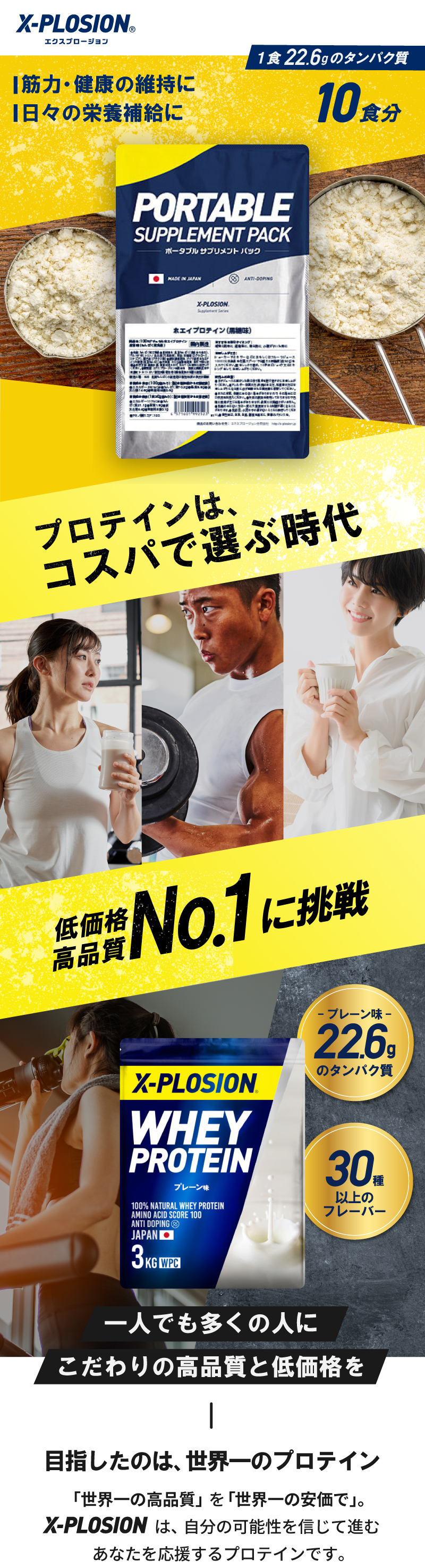 ご購入時期により成分(成分値も含む)・原料産地に若干の変更、また風味・パウダーの質感などに若干の違いが感じられる場合がございますが、1食分のタンパク質量や素材・製品の安全性は全ての製品で入念に確認しておりますのでどうぞご安心ください。