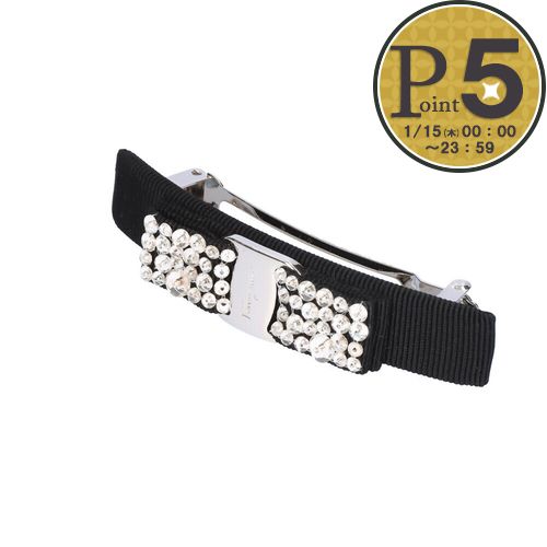 フェラガモのアイコンであるリボンモチーフのバレッタ。華やかなクリスタルとエレガントなデザイン、中央に刻まれたフェラガモの文字が高級感をUP。ボックスもついているのでプレゼントにもオススメです。