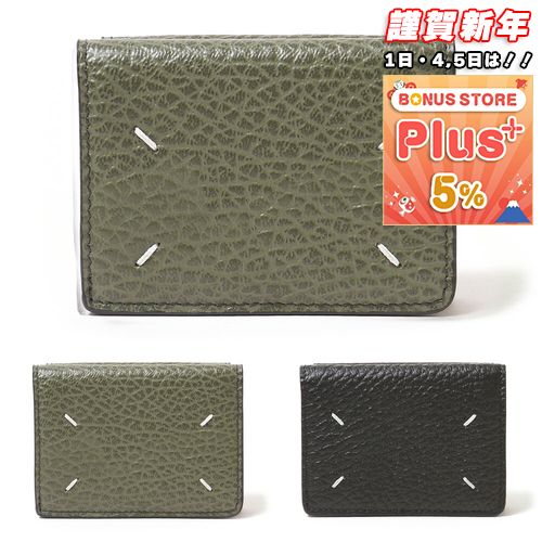 上質なシボ加工されたレザーで仕上げられた折財布。マルジェラを印象付ける白い4つのステッチと内側のカレンダータグがポイントの折財布。コンパクトサイズなのでミニバッグにもすっぽり収まり、シンプルなデザインはユニセックスで使えるおすすめアイテムです。