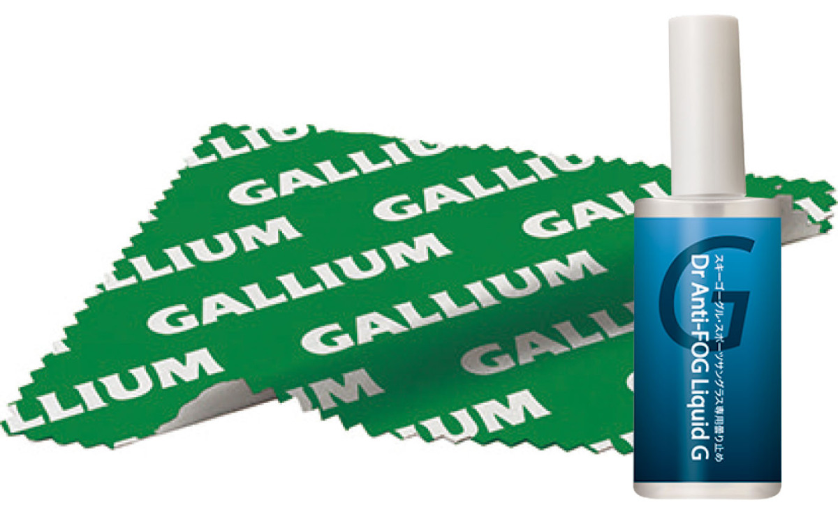 スキーゴーグル・スポーツサングラス・保護メガネ用にガリウムが開発した強力曇り止めです。こちらは専用レンズクロス付きセット。