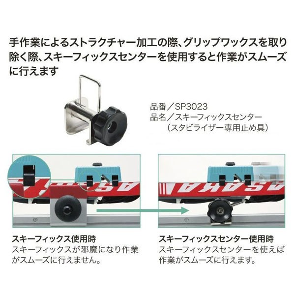 手作業によるストラクチャー加工の際、グリップワックスを取り除く際、スキーフィックスをスキーフィックスセンターに取り替えると作業がスムーズに行えます。