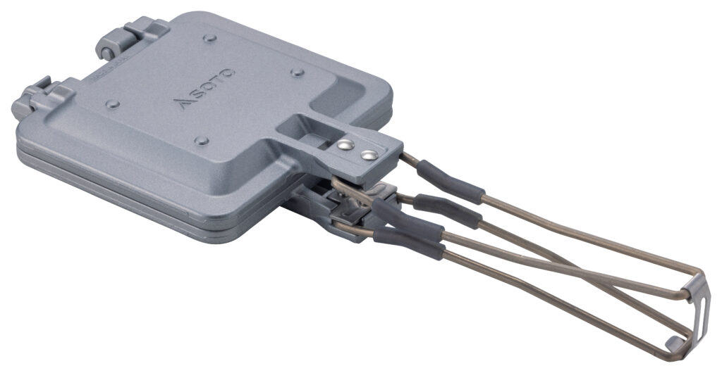 コンパクトに折り畳みができるアウトドア用ホットサンドメーカー熱伝導率の高いアルミダイキャスト製にフッ素樹脂コーティング。