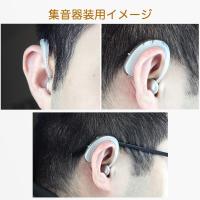 4.電源をオフにして、集音器を耳に掛けます。イヤープラグが耳の中にしっかり装着できていれば、ノイズとハウリングは発生しません。