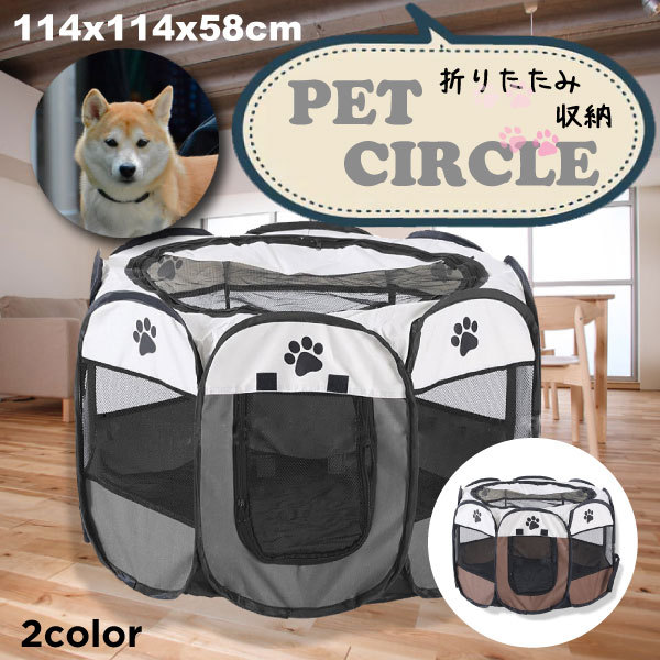 ペットサークル Lサイズ 肉球 折りたたみ 114×58cm ペット メッシュ サークル ケージ ゲージ ペット用サークル 屋外用 室内用 小型犬 犬 八角形 コンパクト