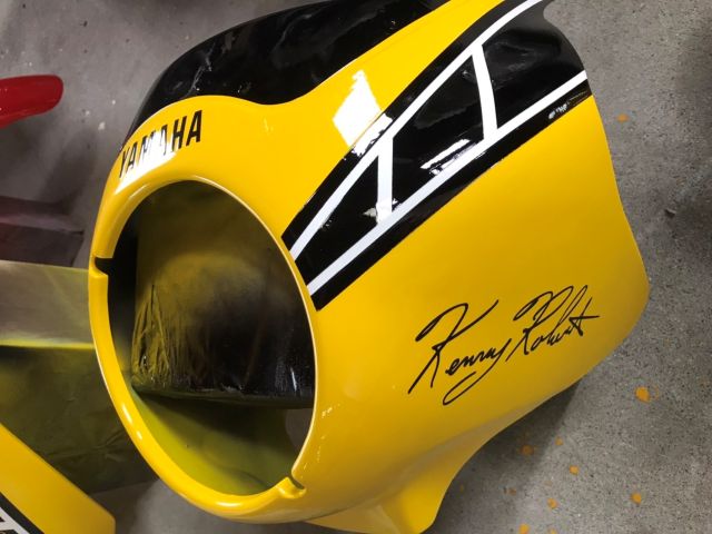| ケニーロバーツサインのシールです。 発送の商品は 画像3枚目のシールになります。 白いシートのサイズは 約15.5cm×6.1cmです。