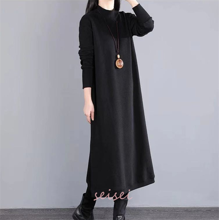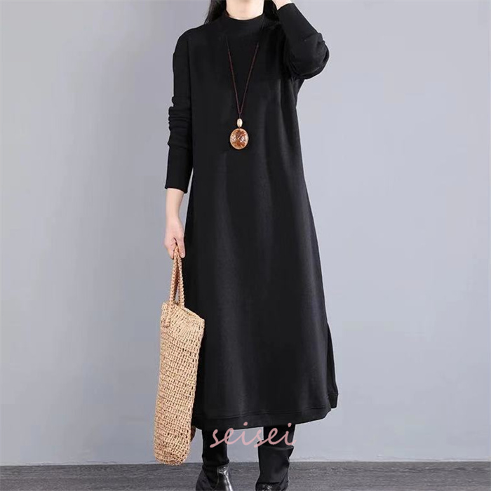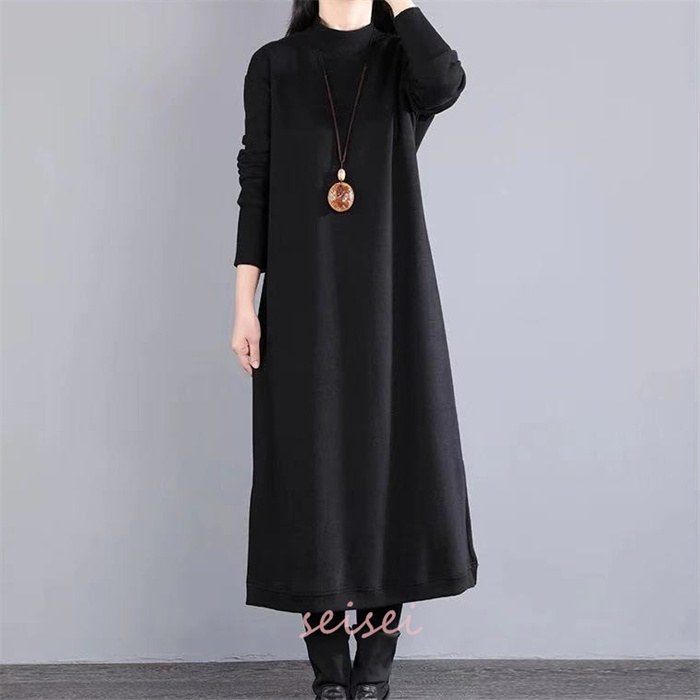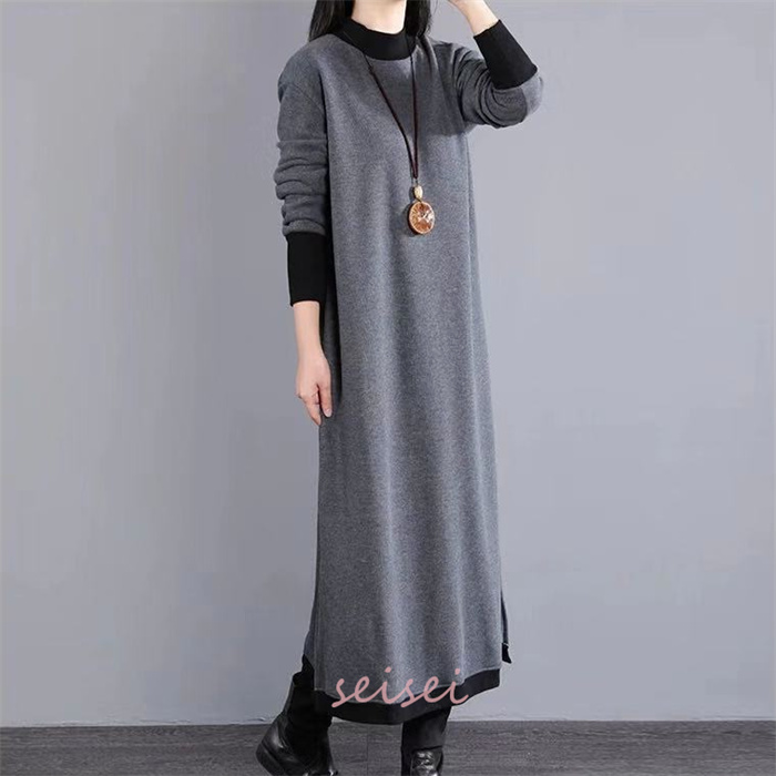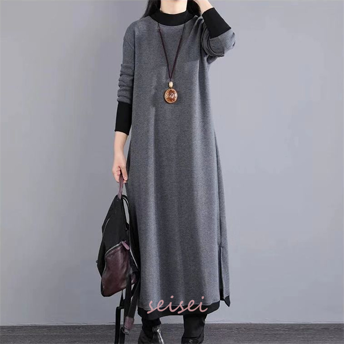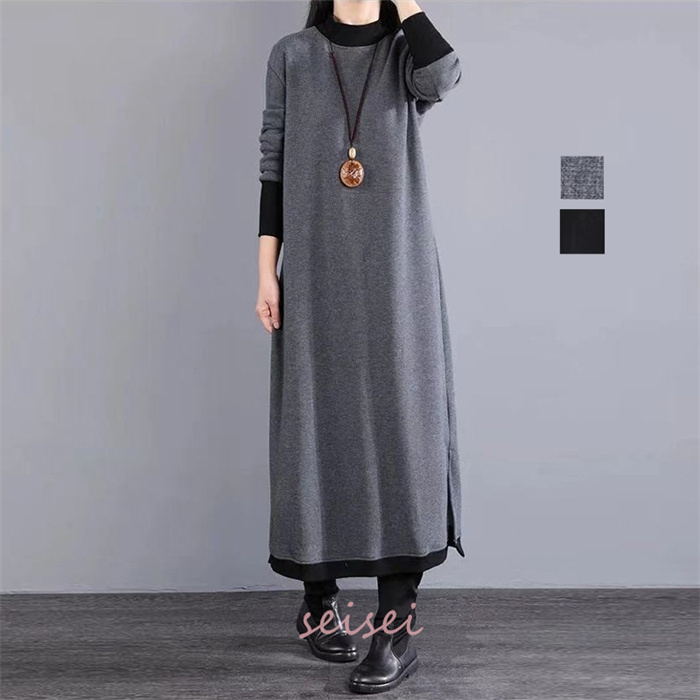 ワンピース レディース 秋 冬 マキシ丈 ロング丈 クルーネック 仕事用 セーター 体型カバー もこもこ 大人 シンプル 可愛い 秋 冬 30代 40代 送料無料
