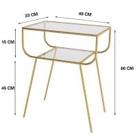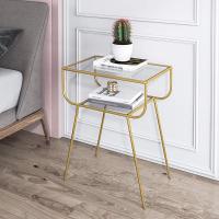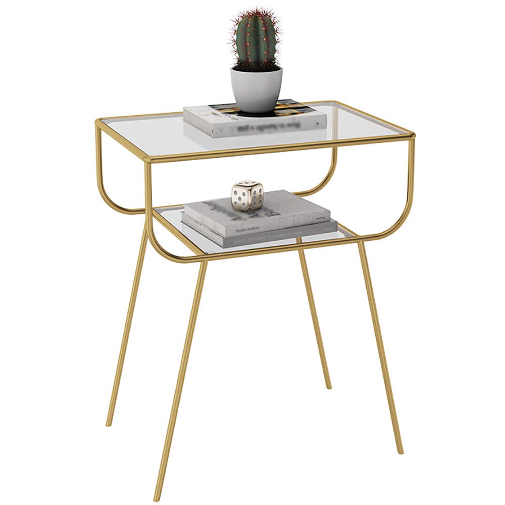 モダンなガラスナイトスタンド錬鉄北欧スタイルソファコーナーサイドテーブルクリエイティブホームベッドルームベッドサイドテーブル2層収納棚(Color:ゴールド)