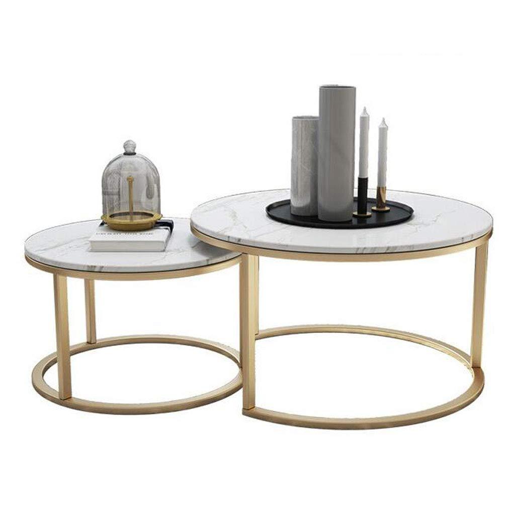 大理石テーブル ネストテーブルセット 2個セット 家具 ラウンドティーカクテルテーブル 、MDFデスク積み重ね可能 るグルームのセット リビングルームまたはラウ