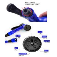 伸びるホース 散水 3倍に伸びる 5m-15m 伸縮 7パターン散水ノズル 軽量 ガーデニング 洗車 園芸 ベランダ・庭掃除用 ブルー