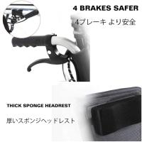 4ハンドブレーキ:2つのリアハンドブレーキと2つのサイドブレーキを備えた車椅子。 ハンドルの実装は、スペースを節約するために折り返すことができます。
