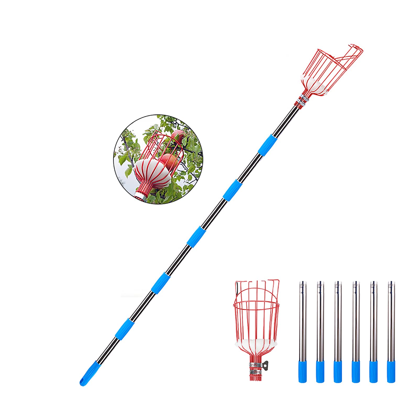 フルーツピッカー バスケット付き 軽量 伸縮式 使いやすい 果物を摘むツール 高枝用 (2.4m)