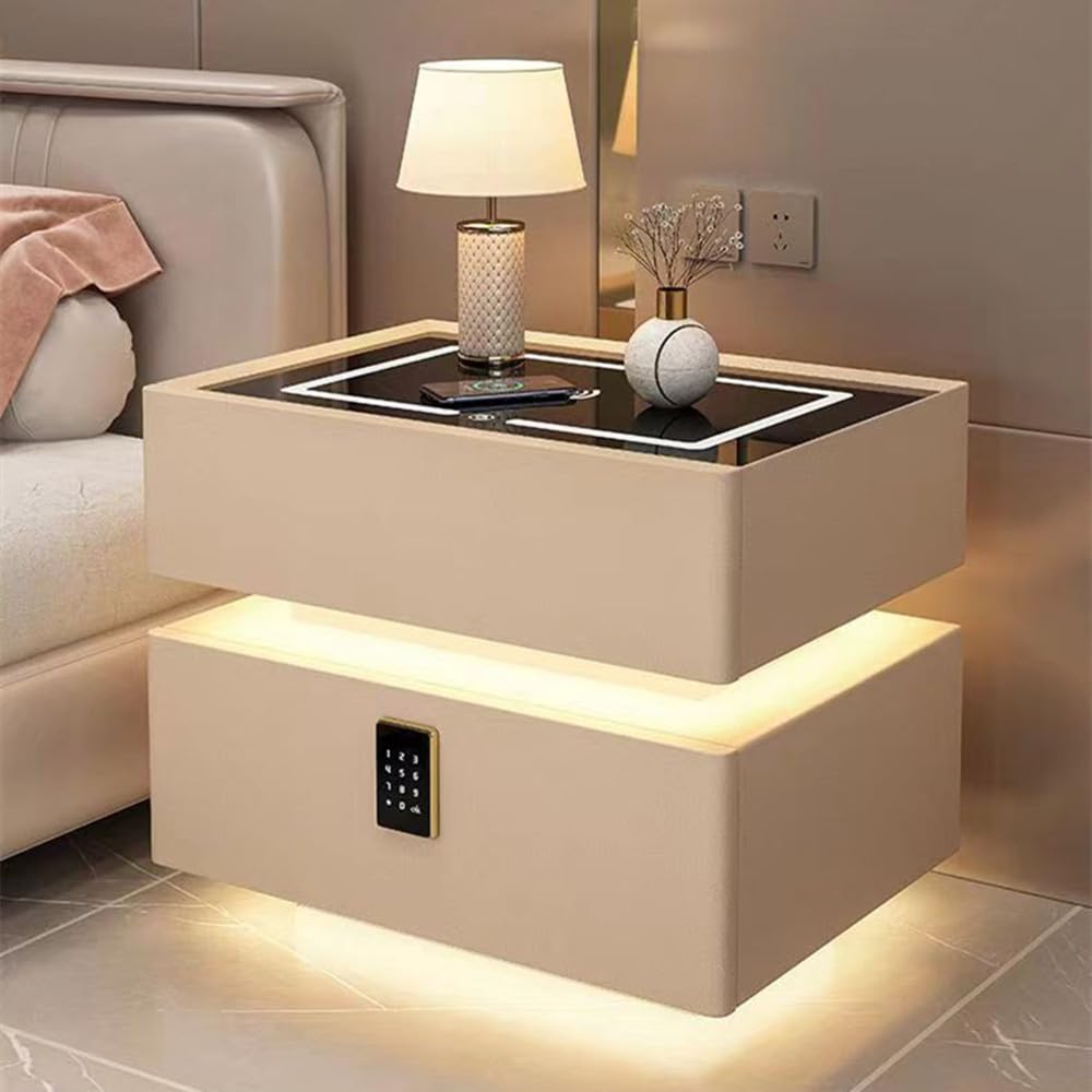 引き出し付きモダンなベッドエンドテーブル スマートベッドサイドテーブル ベッドサイドデスクキャビネット収納 サイドテーブル おしゃれ 隠し金庫付きスマート