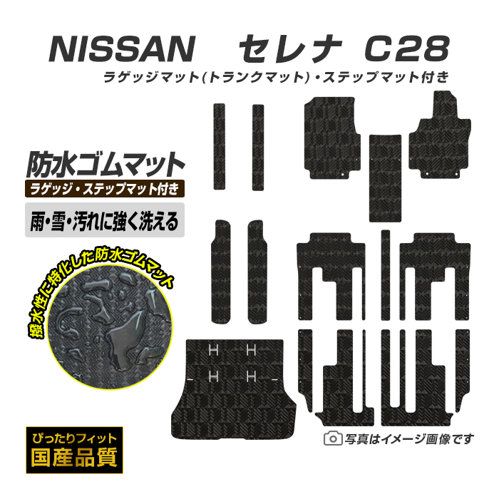 ゴムマット セレナ C28 フロアマット 防水 ラバーマット ステップ・トランクマット付き e-4ORCE対応 令和4年11月〜 日産 洗えるゴムマット