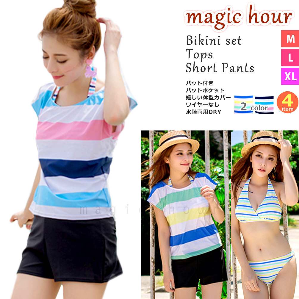 | ◆ レディース カバーアップ ビキニ 4点 セット 体型カバー 水着 スイムウエア◆ | |