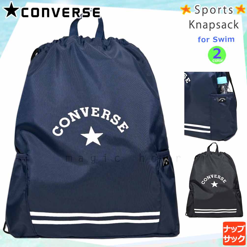 検) 男の子 女児 ジュニア 子供 ナップザック CONVERSE コンバース スイムバッグ ビーチバッグ 水泳 ジム フィットネス 部活 コンパクト ナップサック 青 ブルー ブラック ネイビー リュック エコバッグ