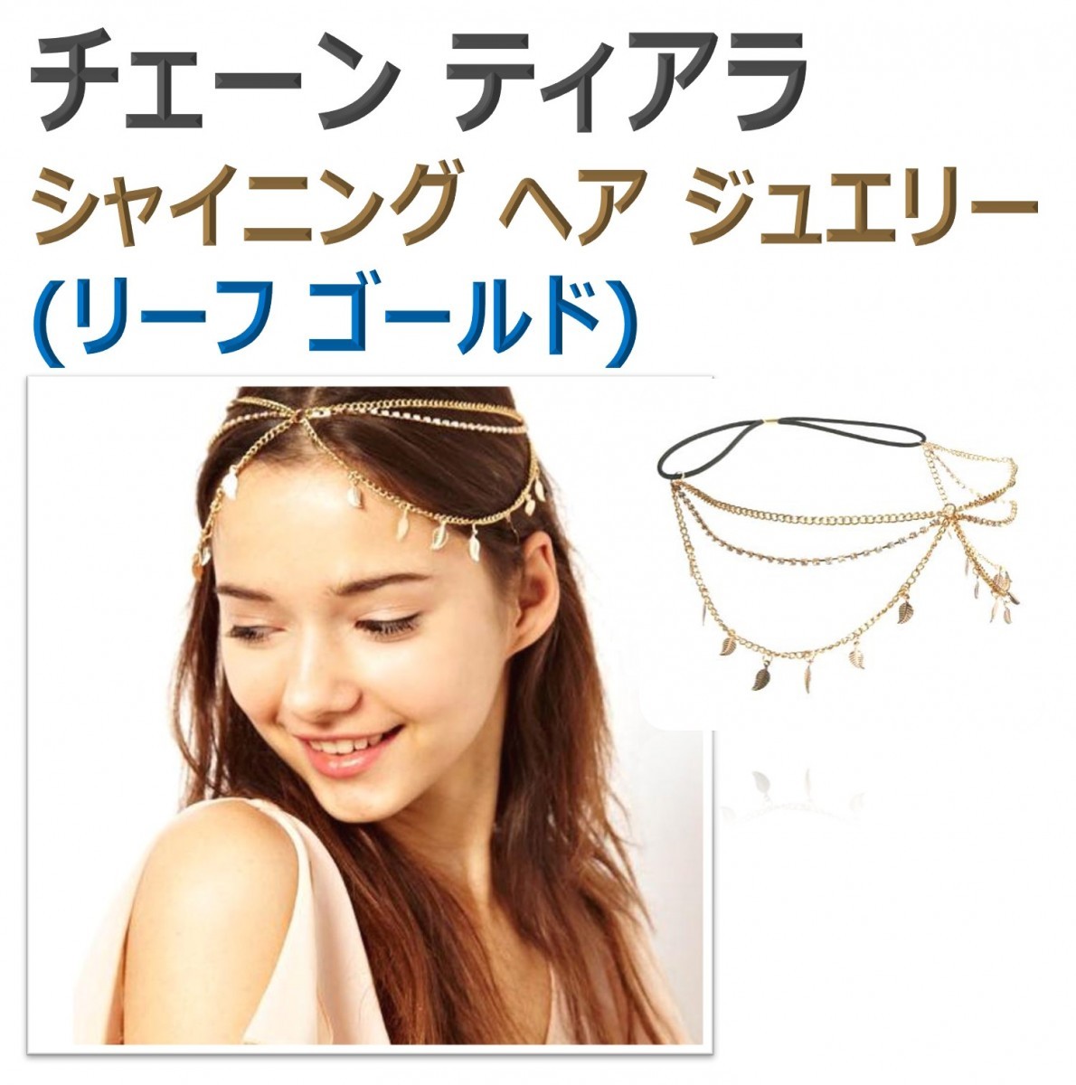 チェーン ティアラ ボディチェーン シャイニング ヘア ジュエリー ヘアバンド 髪飾り リーフ ゴールド