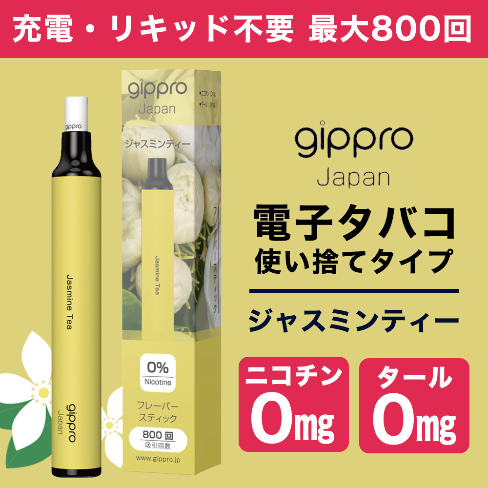 gippro 電子タバコ 使い捨て ジャスミンティー フレーバー MAX800回吸引可能 男性 女性 吸いやすい かわいい おしゃれ ノンニコチン ノンタール