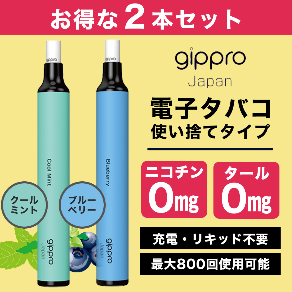 gippro 電子タバコ 使い捨て 2本セット 吸い比べ メンソール&ブルーベリー MAX800回吸引可能 吸いやすい おしゃれ ノンニコチン ノンタール