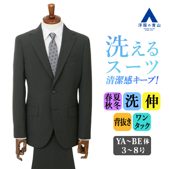 【洋服の青山】スーツ メンズ スリム 春夏秋冬 グレー 織柄 2ボタン ワンタック オールシーズン ストレッチ 動きやすい 洗える ビジネス 入社式 営業 外勤