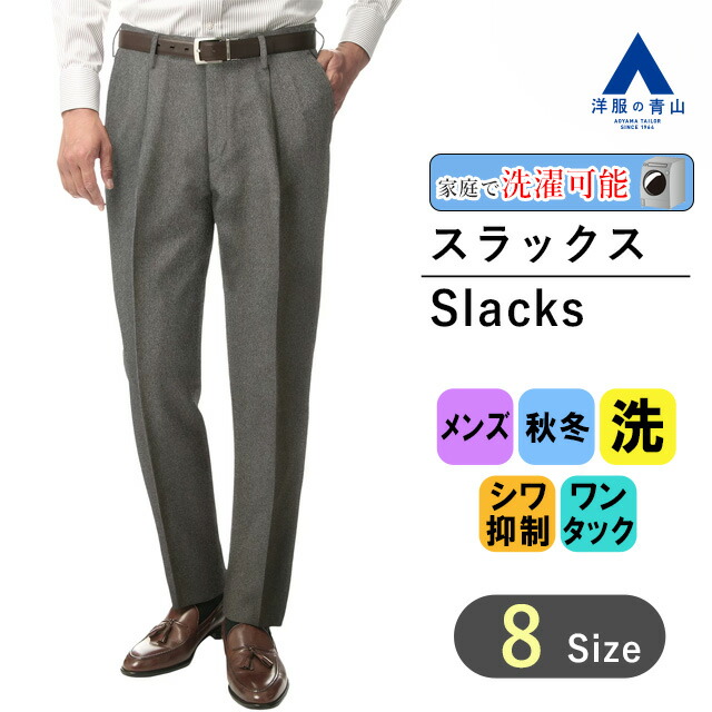 【洋服の青山】スラックス メンズ ゆったり 秋冬用 グレー 織柄 ワンタック 大きいサイズ 洗える ウォッシャブル シワになりにくい シワ抑制 動きやすい 仕事