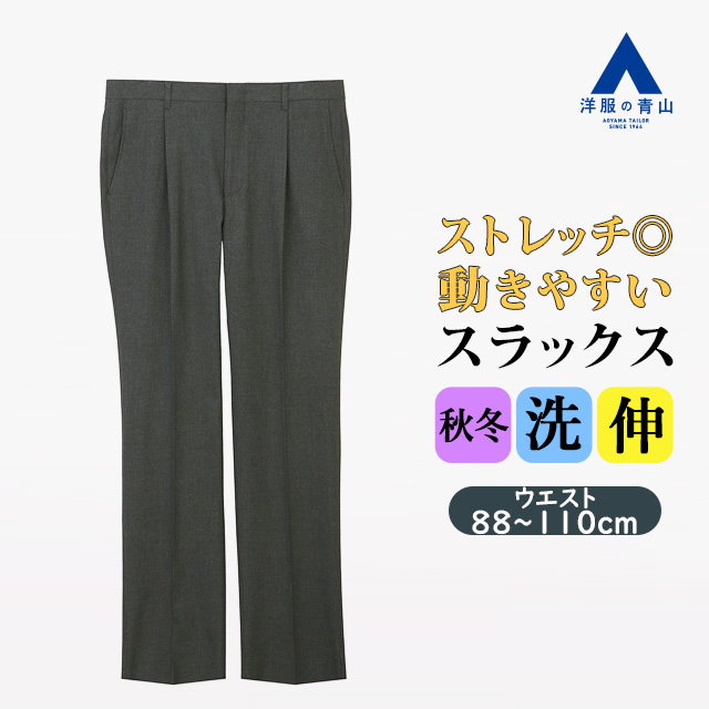 【洋服の青山】スラックス メンズ レギュラー 秋冬 ミディアムグレー 千鳥格子 大きいサイズ ワンタック 洗える ストレッチ 動きやすい ビジカジ 通勤 すごスラ