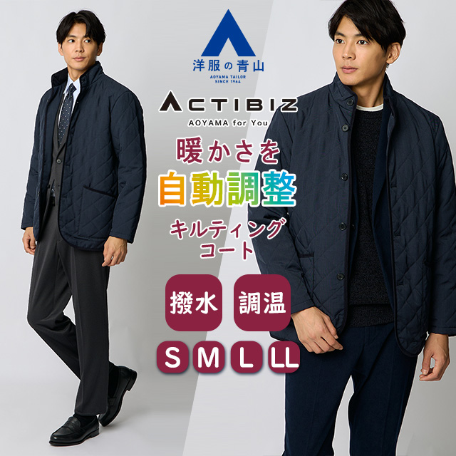 【洋服の青山】スタンドカラー キルティングコート 中綿 メンズ 秋冬 ネイビー 紺 温度自動調整 撥水 汚れにくい 暖かい 上質感 軽量 軽い 疲れにくい ビジネス