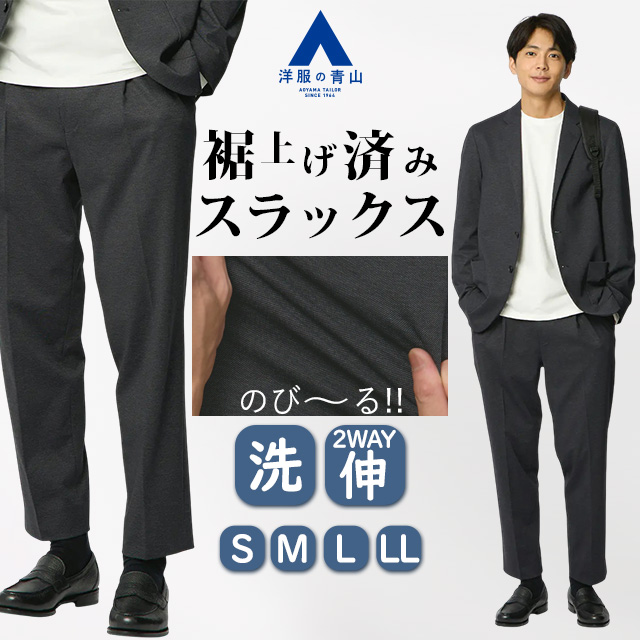 【洋服の青山】裾上げ済み ルーズフィットスラックス 秋冬 グレー 灰色 セットアップ 単品 スーツ 男性 洗える 2WAYストレッチ 動きやすい ビジネス ビジカジ